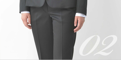 しなやかなボディラインに、自然に美しくフィットするテーラードスーツ。 人気のローライズパンツ、定番のスカート、自由にカスタマイズが可能です。 サイズがないと悩んでいた女性にもぴったり。 お好みに合わせて微調整ができるスーツを是非お試し下さい。