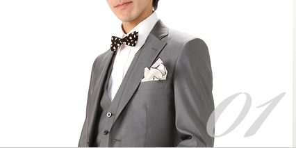 体に合ったオーダースーツなら、それだけで一味違います。カフスボタンや蝶ネクタイなどの小物でいつもより華やかに貴方を着飾りましょう。 基本は略礼服ですが、ベスト付きのシングルスリーピースがおすすめ。いつもより派手目なドレスアップを心がけましょう。
